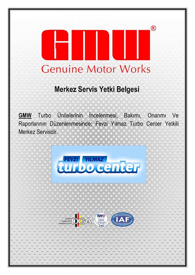 GMW marka turboların kontrol, raporlama ve revizyonunda Türkiye Merkez servisdir.